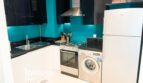 The apartment features a spacious open-plan living and dining area, a fully fitted kitchen with high-quality appliances, and a well-sized bedroom with built-in wardrobes. Large windows allow natural light to fill the space, and a private balcony offers stunning views of the canal and city skyline.