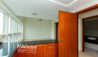 The closed kitchen is fitted with quality cabinetry and ample storage space, ensuring both functionality and convenience. The bedroom is well-sized and comes with built-in wardrobes and includes an en-suite bathroom. The unit also features a maid’s room, providing added practicality for families.